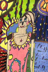 When painted, my compositions spring to life to visually confess a story, animating the painting for the viewer. My favorite parts of my work are the ways that the shapes speak and connect. The mystery in the dark corners. The sharp and spiky shapes vs the squooshy shapes. The multitude of color tints within each piece ranging from fluorescent to muted to colorful. My hope is that I, as a messenger, successfully transmit the message between giant, magical thought forms, to pronounce and accent what needs to be seen and heard.