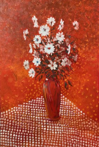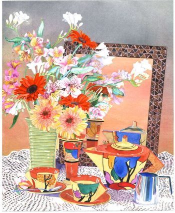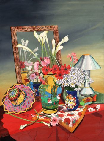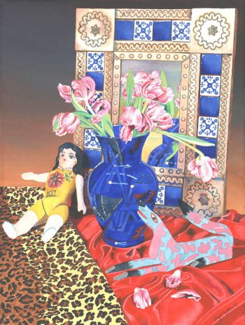 Artist’s Statement: I love painting still life because I am fascinated by the way the still life genre draws upon social and cultural history. Instinctively, my color palette changed radically when I began painting in Southern California, graduating rapidly to more vibrant primary colors from the subtle tones I used in England.